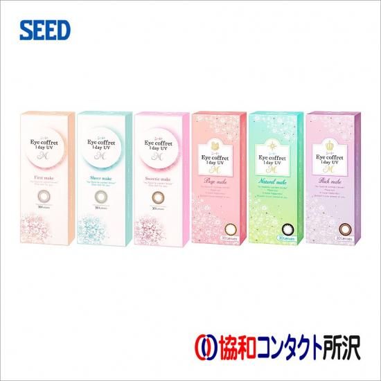 ![]() 瞳の輪郭にふんわりやさしくなじんで、 自然なのに印象的な瞳へ。 あなたらしさを演出したいときに。 ![]() ![]() ![]() ![]() 瞳の輪郭をくっきりきわ立たせながら、 上品で魅力的な瞳へ。 もっと自分を好きになりたいときに。 ![]() ![]() ![]() ![]() 製品特徴 レンズは常に清潔 1DAYタイプ 毎日新しいレンズだから、汚れの蓄積によるトラブルを軽減することができます。レンズケアによるトラブルの発生もありません。 瞳にやさしい UVカット機能 シミなど肌の色素沈着の原因となる紫外線(UV)は、白内障などの眼病を引き起こす原因のひとつといわれています。「シード Eye coffret 1day UV M」シリーズには、紫外線吸収剤が含まれていますので、瞳に有害といわれる紫外線をカットします。 ※UV吸収剤を配合したコンタクトレンズは、UV吸収サングラスなどの代わりにはなりません。また、瞳に入るすべての紫外線をカットするわけではありません。 瞳に色素が触れない インナーカラー構造 着色部の色素を瞳に直接触れさせない、レンズ内部に色素を閉じ込めた構造です。角膜への影響を配慮したデザイン設計を採用しました。 瞳にうるおいを 天然のうるおい成分 レンズ保存液に天然保湿成分「アルギン酸」を配合。瞳の中の水分を引き寄せ、レンズ表面に涙をとどめる働きがあります。 ※アルギン酸は、コンブやワカメなどの海藻類から抽出される天然保湿成分です。 快適な装用感 超薄型レンズデザイン 中心厚は0.05mm※の超薄型。レンズ周辺部分は、シード独自の「スムース・エッジ・デザイン」でなめらかに仕上げたので、快適な装用感です。 ※-3.00Dの場合 汚れがつきにくく乾きにくい 非イオン性低含水レンズ 非イオン性低含水素材を使用しているので、タンパク質などの汚れがつきにくく、乾燥感の軽減が期待できます。 ※装用時の見え方、装用感には個人差があります。 【メーカー】:シード 【タイプ】:1日使い捨てカラーコンタクトレンズ 【ベースカーブ(BC)】:8.7mm 【度数(PW/SPH)】:+3.00〜-12.00 【直径(DIA)】:14.0mm(くっきりアクセント)14.2mm(ふんわりニュアンス) 【枚数】:1箱30枚入り 【承認番号】:23000BZX00077000 ■コンタクトレンズの使用でご注意いただきたいこと コンタクトレンズは目に直接装用する高度管理医療機器です。必ず眼科医の検査、処方を受けてお求めください。コンタクトレンズをご使用の前には、必ず添付文書をよく読み、表現や内容で分からないところがあれば必ず眼科医に相談し、よく確認してからご使用ください。異常を感じた場合は速やかにレンズの装用を中止して眼科医の受診をしてください。レンズの装用で起こった眼障害、トラブル等に対し当店は一切の責任を負いません。自己責任での使用、購入となります。